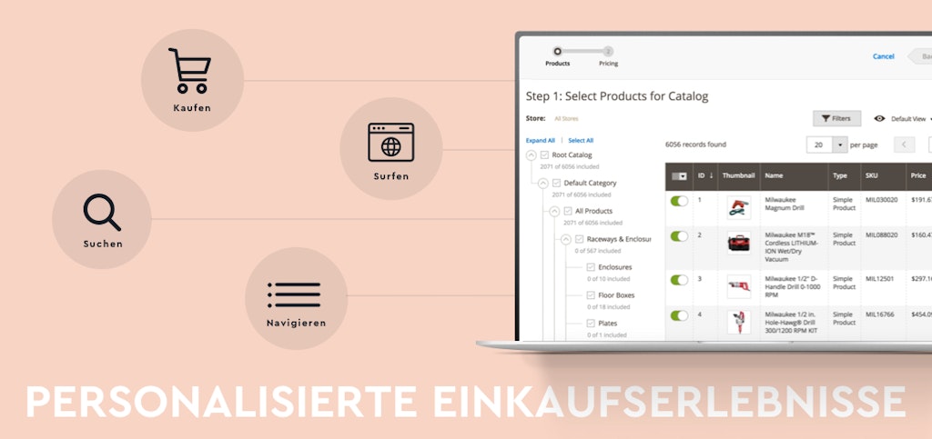 Im B2B-Segment ist die individuelle Betrachtung der Kunden enorm wichtig für den Aufbau langfristiger Geschäftsbeziehungen. Magento Commerce bietet daher die Möglichkeit, den Online-Shop sowie dessen Funktionen und Prozesse zu personalisieren. Des Weiteren können Inhalte sowie Promotions auf bestimmte Kundensegmente ausgerichtet werden.