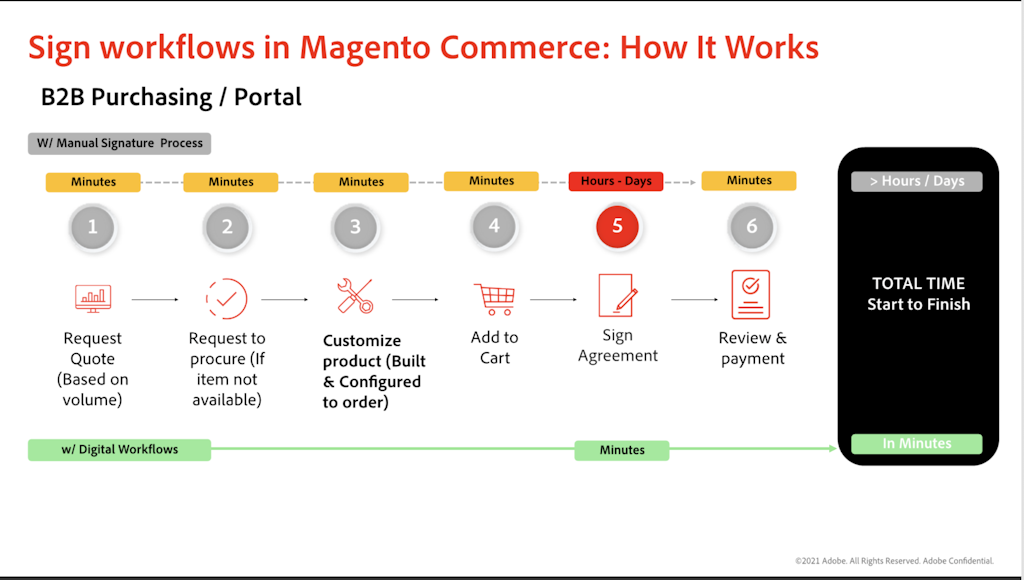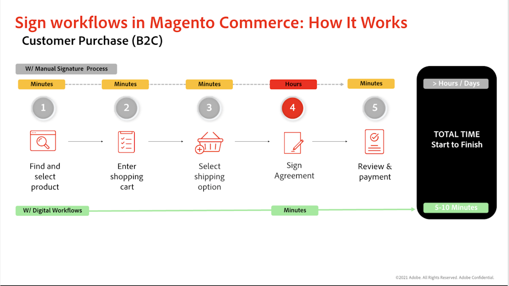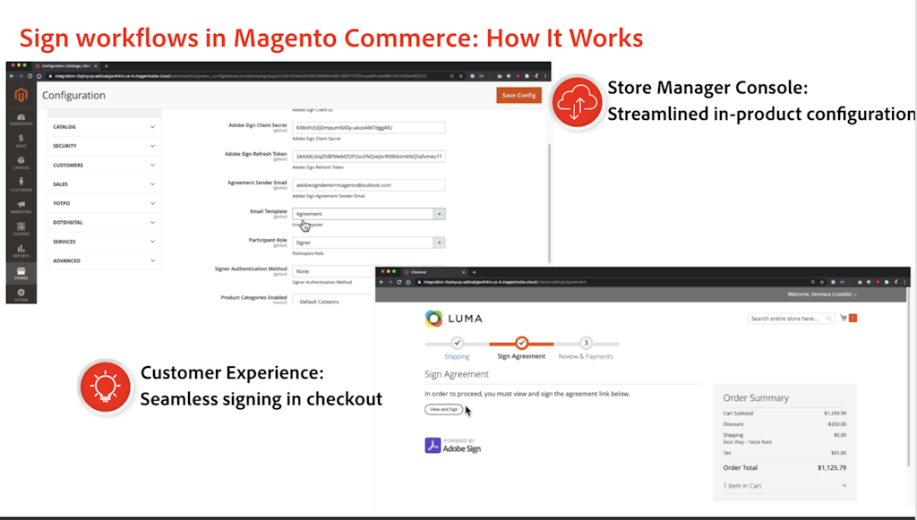 Um Verträge im Online-Business rechtskräftig abschließen zu können, muss ein entsprechendes Tool in das Shopsystem integriert werden. Adobe Commerce-Nutzer haben beispielsweise mit Adobe Sign die Möglichkeit, digitale Unterschriftsprozesse in die Customer Journey einzubetten.
