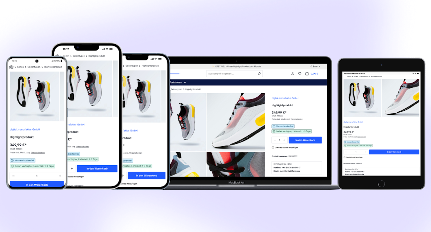 Moderne Shopsysteme wie Shopware 6 passen Bilder automatisch an unterschiedliche Bildschirmgrößen und Layouts an – mal quadratisch, mal im Panoramaformat oder als kleines Produktbild in der Übersicht.